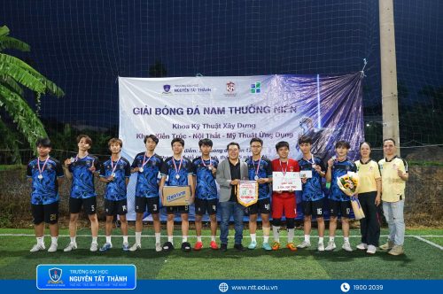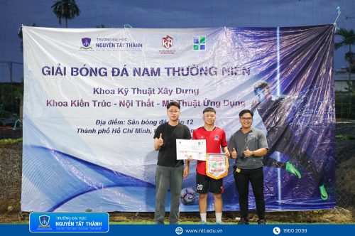🎉 LỄ BẾ MẠC GIẢI BÓNG ĐÁ NAM THƯỜNG NIÊN 2025 Khoa Kỹ Thuật Xây Dựng & Khoa Kiến Trúc – Nội Thất – Mỹ Thuật Ứng Dụng Trường Đại học Nguyễn Tất Thành
