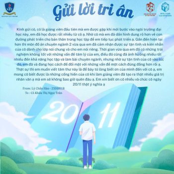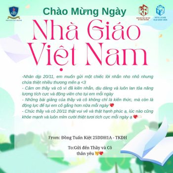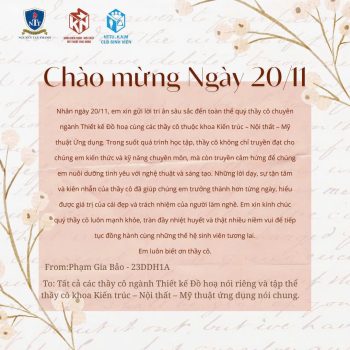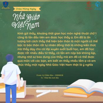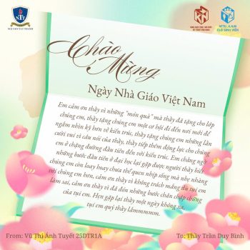 Giữa muôn vàn lời chúc 20/11, nhân ngày Nhà Giáo Việt Nam, sinh viên Khoa Kiến Trúc – Nội Thất – Mỹ Thuật Ứng Dụng của Trường Đại học Nguyễn Tất Thành đã chọn một cách thật đặc biệt để gửi gắm tình cảm của mình: những bức tranh tri ân rực rỡ sắc màu, cùng những dòng tâm thư nhẹ nhàng, chân thành và đầy ắp lòng biết ơn.