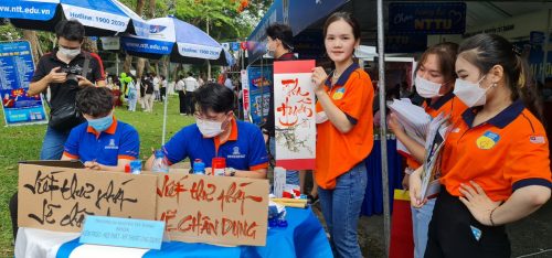 Khoa Kiến trúc – Nội thất – Mỹ thuật ứng dụng tham gia ngày hội lần này với sự chuẩn bị chu đáo, mong muốn giới thiệu một hình ảnh khoa đầy năng động và sáng tạo. Gian tư vấn đầy ắp các bạn học sinh được các giảng viên nhiệt tình giải đáp thắc mắc, băn khoăn cũng như mô tả rõ ràng nghề nghiệp tương lai các ngành Kiến trúc, Nội thất và Đồ họa. Bên cạnh đó, gian hàng thư pháp – ký họa của các bạn sinh viên khóa trên cũng thu hút rất nhiều sự quan tâm của học sinh tham gia, điều này chứng tỏ sức hút của các ngành nghề này vẫn còn rất mạnh mẽ. Dưới đây là một số hình ảnh về Ngày hội tuyển sinh.