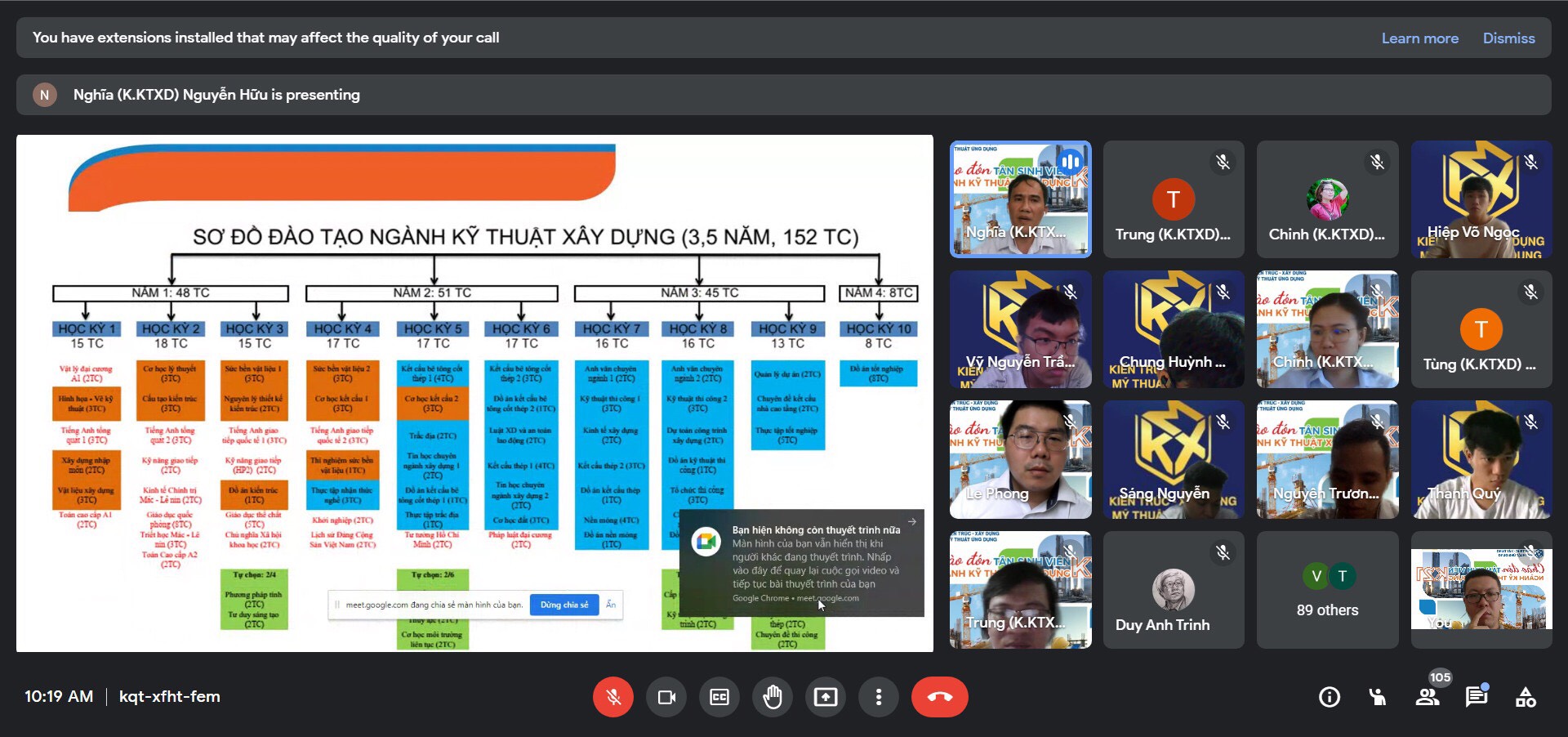 Vừa qua 3 ngày 8/10, 9/10, 10/10/2021 Khoa Kiến trúc – Xây dựng – Mỹ thuật ứng dụng Trường ĐH Nguyễn Tất Thành đã tổ chức thành công buổi gặp mặt Chào đón Tân SV K21 các ngành của Khoa thông qua ứng dụng trực tuyến GG Meet.Các em Tân SV K21 tham gia rất hào hứng và nhiệt tình.