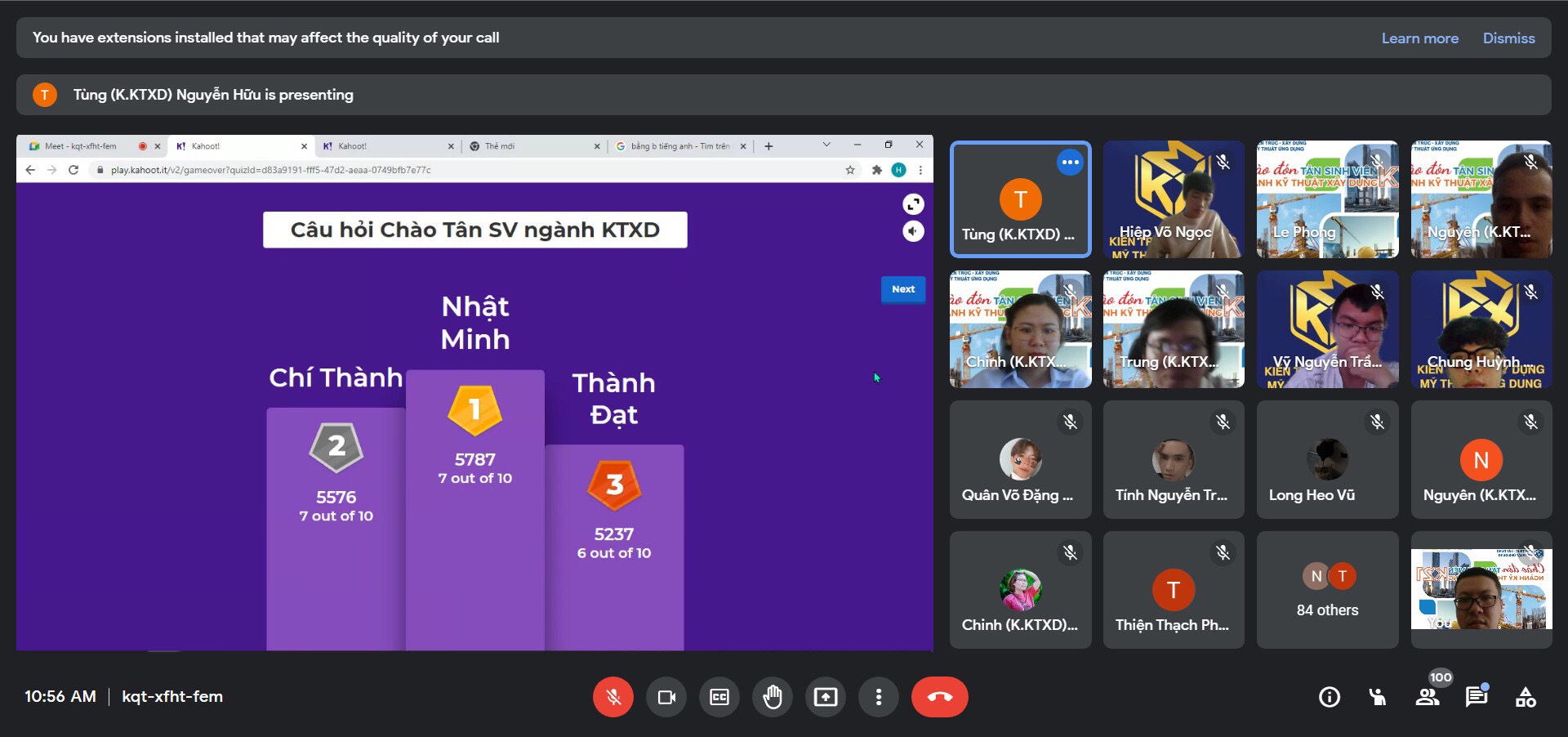 Lần đầu tiên Lễ hội chào đón Tân SV được tổ chức trực tuyến theo hình thức đặc biệt thế này. Chắc chắc sẽ là kỉ niệm khó quên trong cuộc đời SV của các em.Toàn thể Giảng viên Khoa KT-XD-MTUD gửi những lời chúc tốt đẹp đến Khoá 2021.